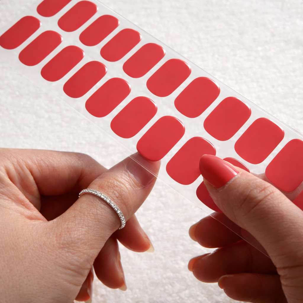 Each wrap is made from semi-cured gel, meaning it’s been partially hardened under UV light to create the perfect balance of flexibility and strength. Once applied and fully cured, it bonds seamlessly to the nail -delivering a smooth, durable finish that lasts up to 14 days without chipping, lifting, or peeling.
