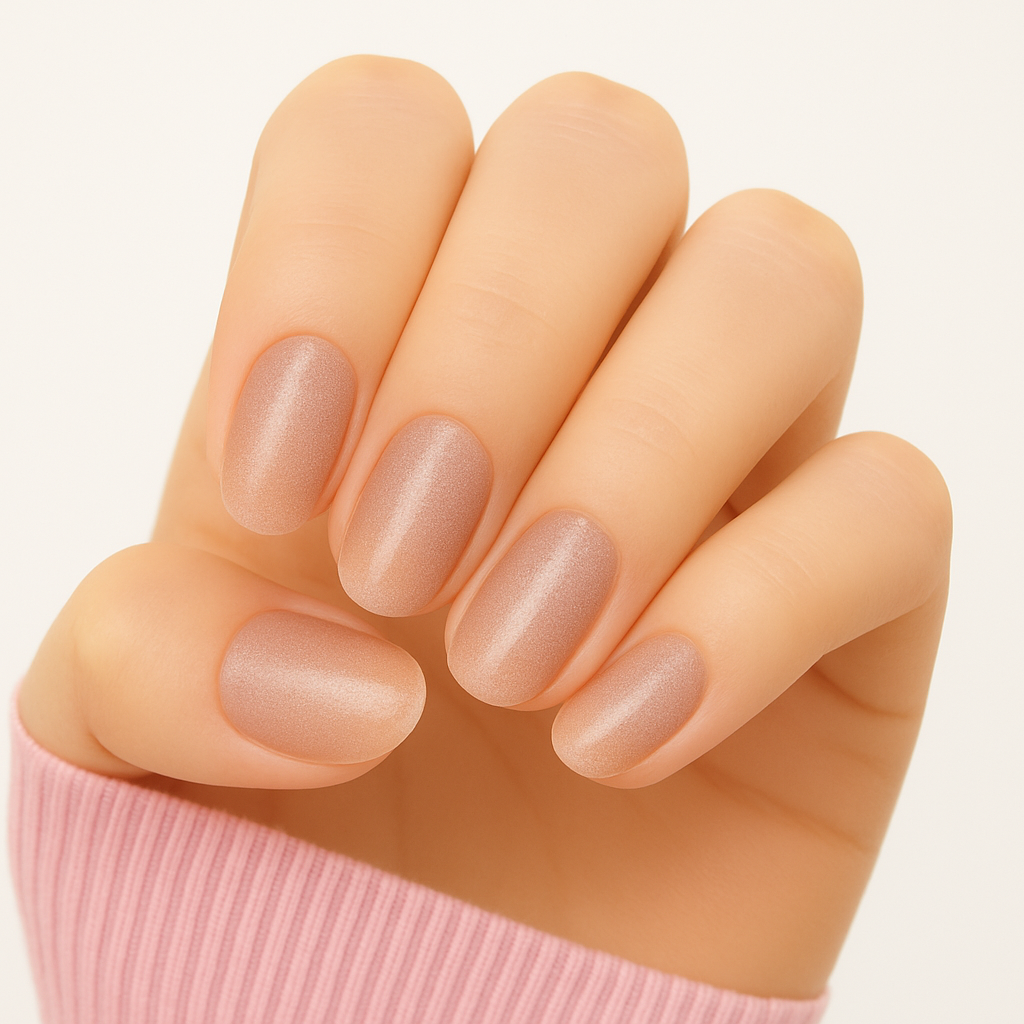 Minimalism meets elegance in Bare Radiance. This understated design features a soft champagne-nude base infused with a fine pearlescent shimmer that catches the light just enough to glow—never overpower. Perfect for those who love a clean, polished look with a touch of luminosity, this set flatters every skin tone and transitions seamlessly from casual days to sophisticated nights.